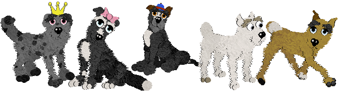 So this is thread #1! RULES - If no longer wanted, return to pintopetz@gmail.com or MPA - Do not claim you bred these petz - Do not put up for sale/trade/download/auction. - Gender swap/name changes are okay. - Clothing items don't mean anything pertaining to the dog, I just like hats. - Questions about a pup? Ask! I'll take more pics, tell you parents, paint patches, etc. etc. - Pets in black are 5 bones, blue pets are 10 bones, and red pets are 15. Strikethrough has been adopted.
