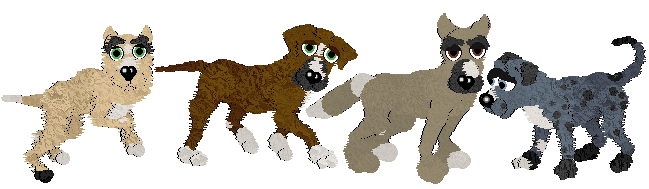 RULES - If no longer wanted, return to pintopetz@gmail.com or MPA - Do not claim you bred these petz - Do not put up for sale/trade/download/auction. - Gender swap/name changes are okay. - Clothing items don't mean anything pertaining to the dog, I just like hats. - Questions about a pup? Ask! I'll take more pics, tell you parents, paint patches, etc. etc. - Pets in black are 5 bones, blue pets are 10 bones, and red pets are 15. Strikethrough has been adopted.